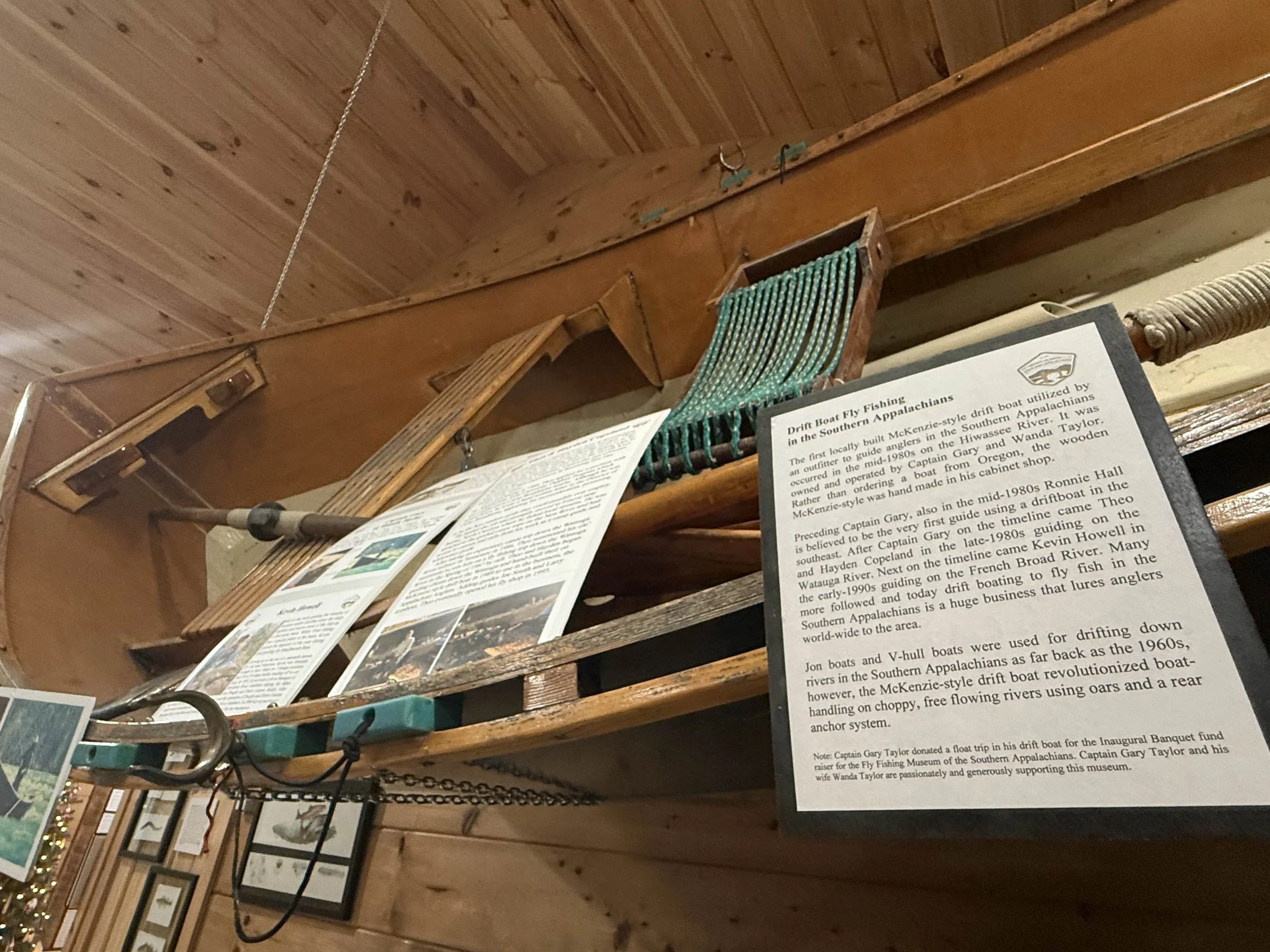 The boat is just one of the many impressive pieces in the fly fishing exhibit.